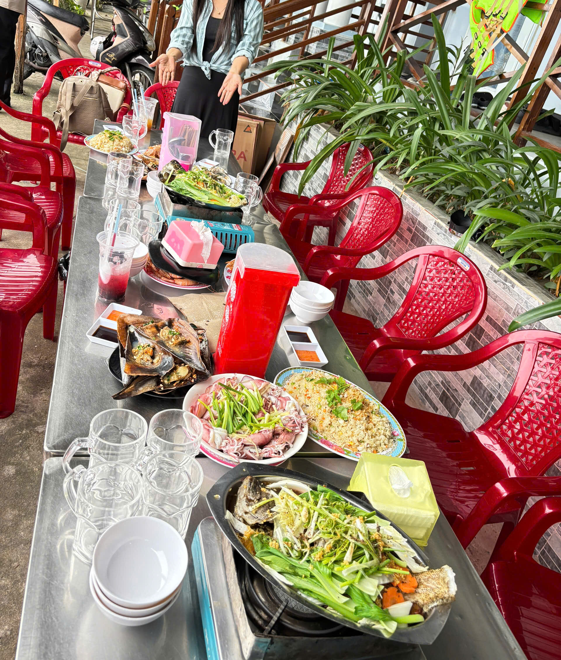 Hải sản ở đây được ngư dân đánh bắt trong ngày, tươi rói và ngọt thịt: nhum biển, mực, cá bóp, ghẹ, sò lông…
